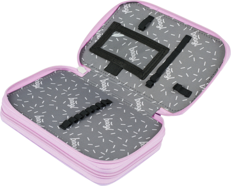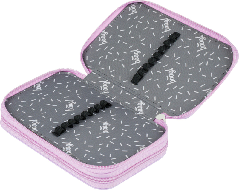 Astuccio scolastico a due piani con dorso rinforzato per una facile maneggevolezza.
