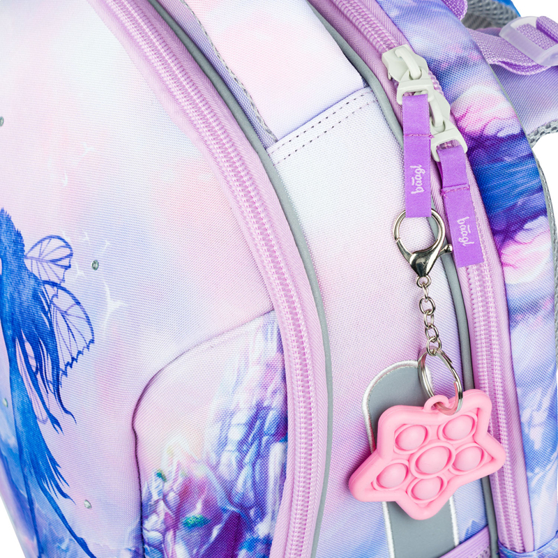 • Lo zaino è dotato di un trendy portachiavi pop-it.