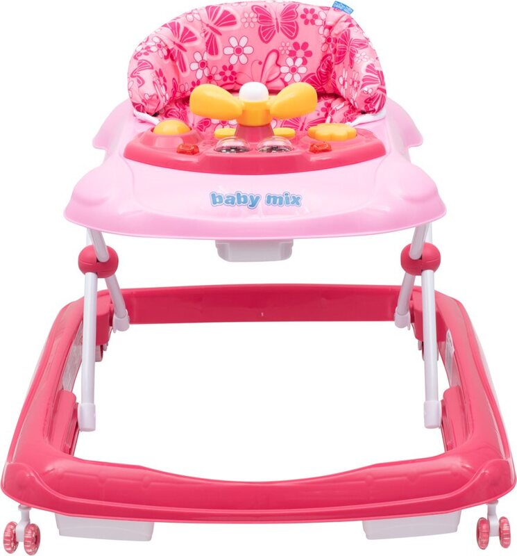 Baby Mix passeggino multimediale con ruote in silicone. Il passeggino è dotato di un comodo sedile ergonomico che garantisce una corretta postura della colonna vertebrale. Il pannello multimediale include vari effetti luminosi, un volante che suona e può essere ruotato, pulsanti per la riproduzione di melodie e due luci. Questo bellissimo passeggino con giocattoli incanterà i piccoli esploratori e permetterà loro di giocare ancora più a lungo. Il passeggino è dotato di un sistema speciale anti-ribaltamento che garantirà comfort e sicurezza al tuo bambino.