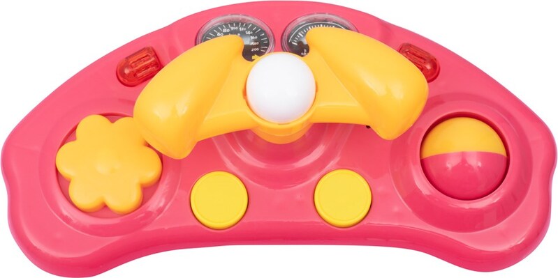 - Pannello multimediale con effetti sonori e luminosi, 12 melodie da riprodurre, clacson con volante girevole (alimentato da 2 batterie AA da 1,5V - non incluse)