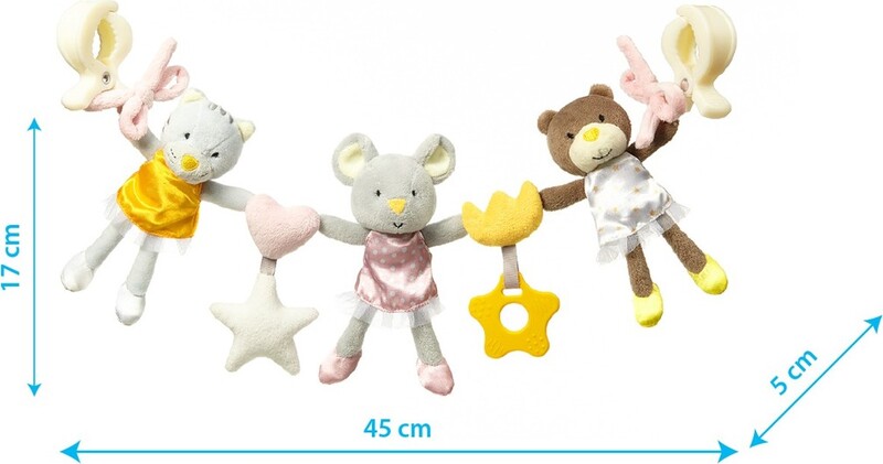 Un fantastico bar per piccole principesse a forma di ballerina, che si attacca a un lettino, un seggiolino per auto o una carrozzina grazie alle pinze. Hrazdička fa parte della popolare collezione Play More e introduce il tuo bambino in un mondo diversificato di colori, suoni e forme. L'idea di questa collezione di giochi è quella di stimolare la curiosità dei bambini e incoraggiarli ad imparare attraverso il gioco. Permette al bambino di acquisire nuove abilità, dove sviluppa capacità motorie e cognitive. Il giocattolo intrattiene il bambino con un gran numero di attività, gli dà un senso di sicurezza, supportando così lo sviluppo emotivo. Il suono del fischio suscita interesse e mostra il rapporto di causa ed effetto. Il morso in morbido silicone, che fa parte del trapezio, lenisce le gengive irritate durante la crescita dei primi denti. Il suono di un sonaglio ha un effetto calmante sul bambino. Il giocattolo è realizzato con materiali di qualità con un'enfasi su ogni dettaglio. Il giocattolo soddisfa gli standard di sicurezza in vigore nell'Unione Europea.