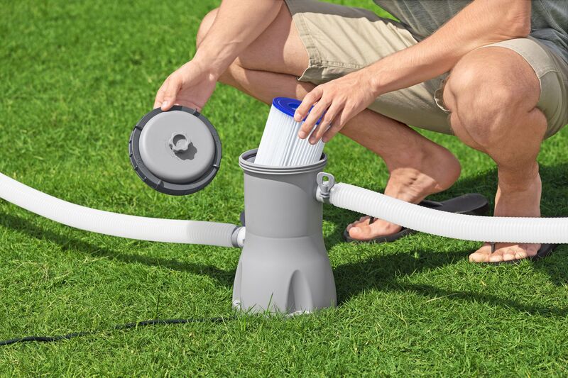 Il set include tutto ciò di cui hai bisogno per un divertimento senza preoccupazioni in acqua: pompa filtrante (3 028 l/h, 220-240 V, trasformatore 12 V, 40 W) – con certificazione GS da DEKRA e adatta per l'uso in Germania, Paesi Bassi, Belgio e Lussemburgo.