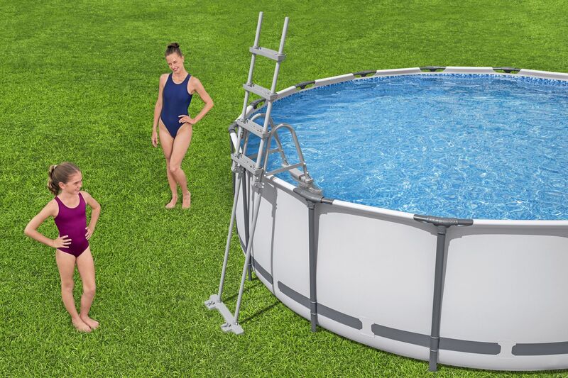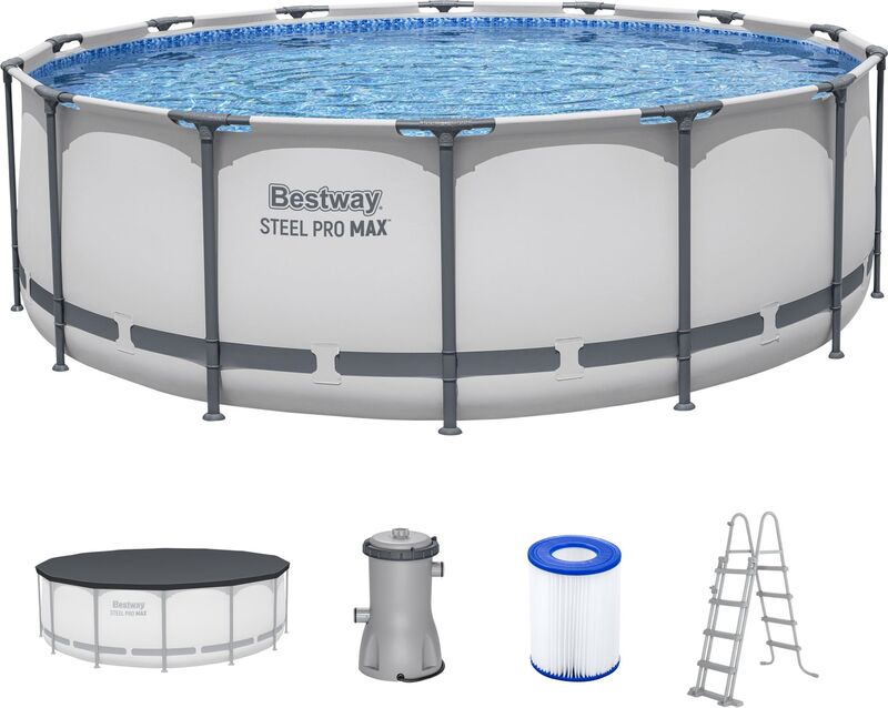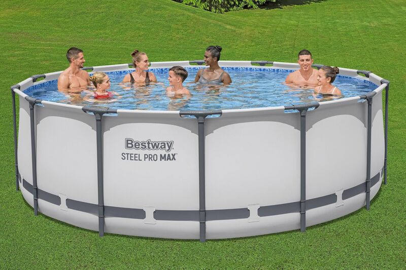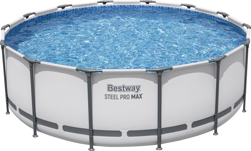 Trasforma il tuo giardino in un'oasi estiva perfetta con il set completo della piscina con struttura Bestway® Steel Pro MAX™. Questa spaziosa piscina grigio chiaro con un diametro di 427 cm e una profondità di 122 cm offre ampio spazio per la famiglia e gli amici.