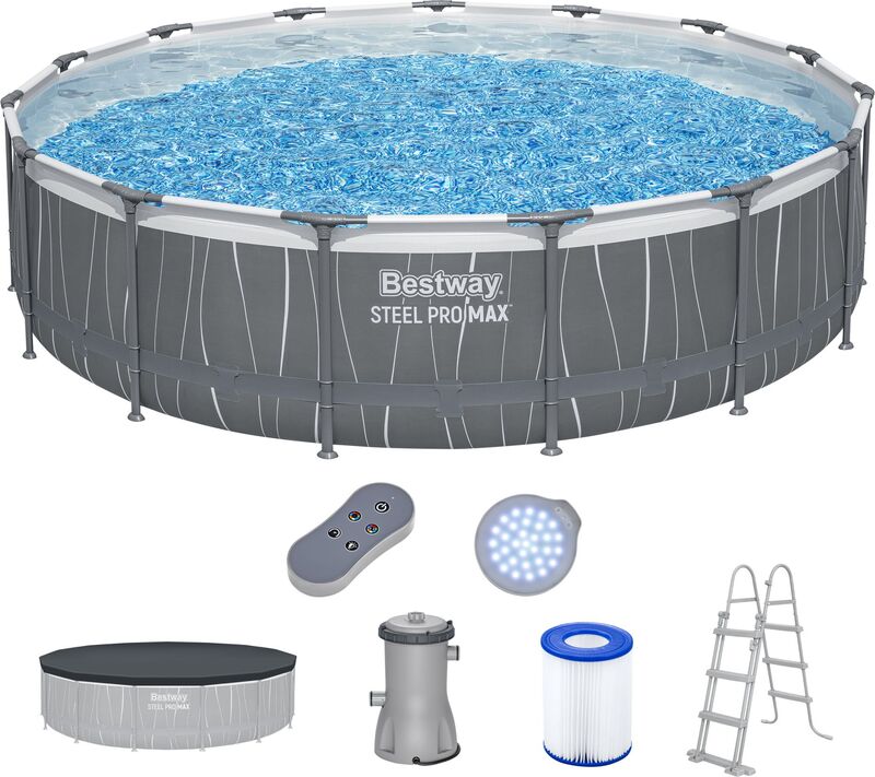 Immergiti nell'estate con il set completo della piscina Bestway® Steel Pro MAX™ Frame Pool. Con un generoso diametro di Ø 457 x 107 cm, questa piscina offre ampio spazio per la famiglia e gli amici.