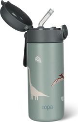 Borraccia per liquidi con cannuccia e supporto in silicone da 350 ml, Dino