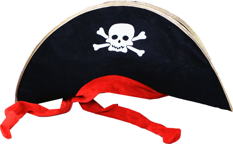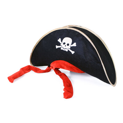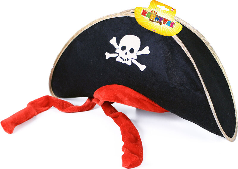 Un fantastico cappello da carnevale nello stile di un capitano pirata è destinato agli adulti. Il cappello di velluto nero è decorato con una stampa di teschi pirata, nastro rosso e finiture dorate. Ti divertirai molto con questa parrucca.