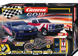 Set di pista Carrera GO!!! lungo 4,9 m con auto Ford Mustang '67 e Chevrolet Camaro, include un ponte, rettilinei, curve, un looping, un pezzo con contatore giri e altri componenti. Puoi costruire ulteriori tracciati diversi secondo la tua fantasia. Dimensione del tracciato: 4,9 mDimensioni dopo l'assemblaggio: 158 x 68 cm Contenuto della confezione:  1x auto Ford Mustang '67 Stars 'n Stripes 1x auto Chevrolet Camaro Stars 'n Stripes rettilinei looping curve 1x pezzo di alimentazione (61666) 1x pezzo con contatore giri (88107) 2x controller di velocità (61663) 1x trasformatore supporti, barriere, spazzole di contatto, guide, istruzioni    GO!!! - Velocità turbo nel mondo delle corse automobilistiche Carrera scala del tracciato 1:43 auto in scala 1:43 tutti i set includono un controller di velocità con funzione Turbo tutte le auto hanno doppie spazzole di contatto per una migliore aderenza sulla pista tutte le auto hanno un magnete il sistema di morsetti facilita il montaggio e smontaggio della pista costruzione precisa e stabile della pista, inclusi supporti regolabili in altezza auto dettagliate, stampate a tampone licenza esclusiva mondiale per veicoli F1 Ferrari, Red Bull licenza originale Paw Patrol, Minions, Disney-Pixar Cars, Star Wars, Nintendo, Sonic ampia gamma di accessori (ponte, contatore giri, salto, rotonda, set di espansione, pezzi da rally e altro per ancora più divertimento nelle corse ottima qualità di lavorazione i set includono un pezzo di alimentazione, contatore giri meccanico, 2x controller di velocità, 2x auto, barriere, giunzioni della pista, istruzioni  adatto per bambini a partire dai 6 anni  ogni set include spazzole di contatto di ricambio per le auto sistema analogico della pista CARRERA significa corsa in spagnolo e possiamo garantirti una cosa. Non appena apri la scatola con il logo Carrera, il tuo sangue da corridore inizierà a pompare alla massima velocità, indipendentemente dalla pista o dall'auto con cui stai correndo. Questa sensazione è stata vissuta da migliaia di fan dal 1963, quando il marchio Carrera ha visto la sua prima pista da corsa. Negli oltre quarant'anni successivi, Carrera si è affermata come leader nel settore delle corse, delle automobili e degli accessori. Oggi offre prodotti di altissima qualità, destinati non solo ai bambini, ma anche agli adulti, per i quali le corse automobilistiche sono diventate un hobby per tutta la vita.