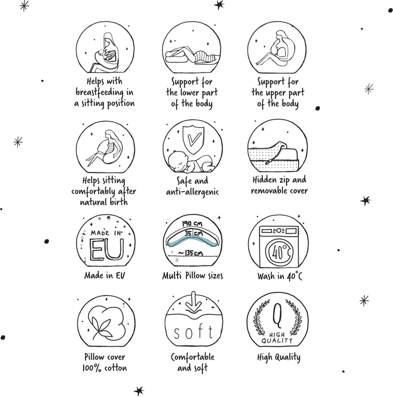 Cebuška Multi – cuscino multifunzionale per donne in gravidanza, giovani genitori e bambini. Un grande cuscino comodo che offre relax e migliora significativamente il comfort della futura mamma e successivamente anche del bambino.