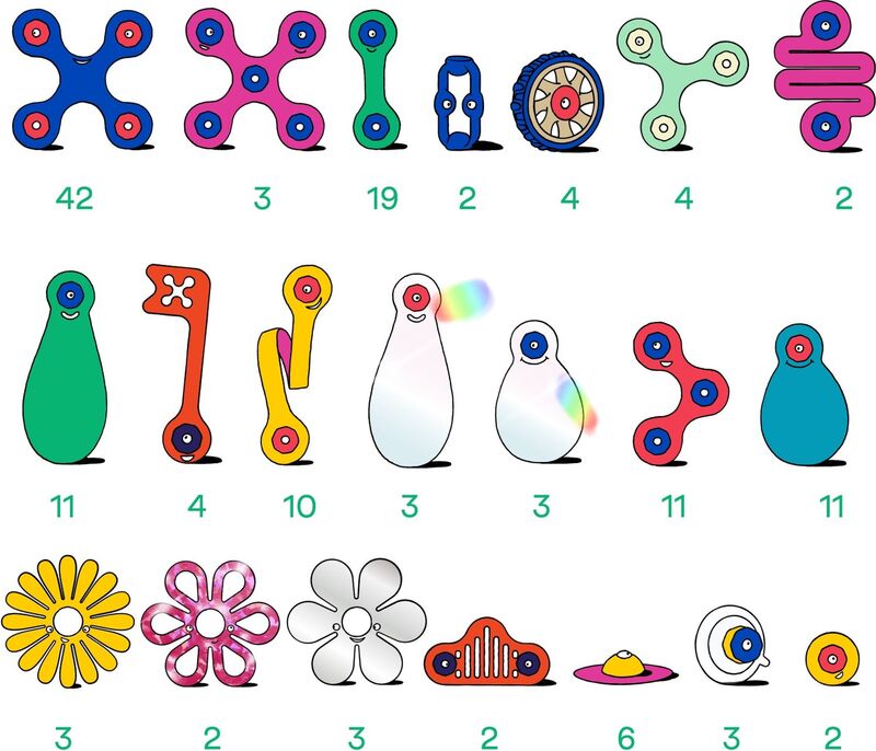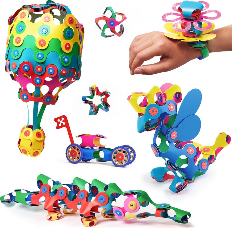 Supporta l'immaginazione dei tuoi bambini con il kit di costruzione flessibile con magneti di CLIXO! Stai cercando un giocattolo per bambini divertente e coinvolgente che promuova la creatività e l'apprendimento? Non cercare oltre questo kit di costruzione flessibile con magneti integrati in un astuccio ingegnoso che consente un movimento rotatorio di 360° e fissa in 24 posizioni. Questo unico brevetto garantisce la stabilità di tutte le creazioni. Il kit è progettato per sviluppare la creatività infantile, la percezione spaziale e le abilità motorie fini. I singoli set sono ottimi strumenti per l'insegnamento STEAM a casa e in classe. Ogni pezzo flessibile a forma di quadrifoglio crea costruzioni 2D e 3D che possono essere attaccate a qualsiasi superficie magnetica. La loro forma unica multidirezionale consente ai bambini di piegare, torcere e unire i pezzi in qualsiasi modo, promuovendo il gioco fantasioso.