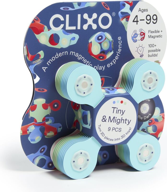 CLIXO Tiny & Mighty Marine - 9 pezzi è un kit di costruzione magnetico flessibile, molto leggero e che brilla al buio, realizzato in carta sintetica, nei colori del mare e delle profondità oceaniche. È ispirato all'origami, ma si basa sul principio di unione di diverse forme e pezzi tramite l'attrazione dei magneti. Il kit Clixo non è solo un ottimo giocattolo Montessori, ma viene utilizzato anche come strumento antistress o di relax per bambini e adulti. Questo set tematico da viaggio del mondo sottomarino consente di costruire fino a 100 diverse strutture e di creare combinazioni come piccole perle scintillanti, minuscoli animali, un serpente marino che attende la sua occasione dal suo oscuro nascondiglio sotto la superficie, o una palla che galleggia sulla calma superficie marina. Le ispirazioni per diversi modelli si trovano all'interno della confezione di carta. In questo pacchetto di dimensioni tascabili ispirato al mare si nasconde un mondo misterioso ancora inesplorato dall'uomo! Questo set è perfetto anche come complemento a qualsiasi altro set ed è ispirato al set tematico Ocean Creatures.