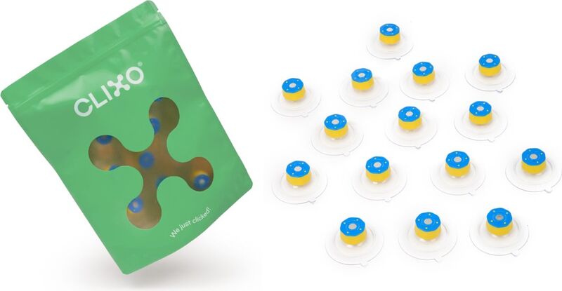 CLIXO - Ventose - set di 16 pezzi è un set accessorio compatibile con tutti i set. Le ventose sono un ottimo compagno non solo in viaggio, ma anche a casa. Ti divertirai con loro e grazie ai magneti all'estremità opposta della ventosa potrai decorare le tue creazioni Clixo su finestre, porte o qualsiasi superficie liscia, su cui si attaccheranno bene. Le ventose stimolano l'immaginazione, e per questo il gioco non deve avere regole. Questo pacchetto è quindi adatto come accessorio per tutti i set. Troverai ispirazioni per diverse costruzioni all'interno della confezione di carta. Il prodotto non teme l'acqua e quindi è facile da pulire.