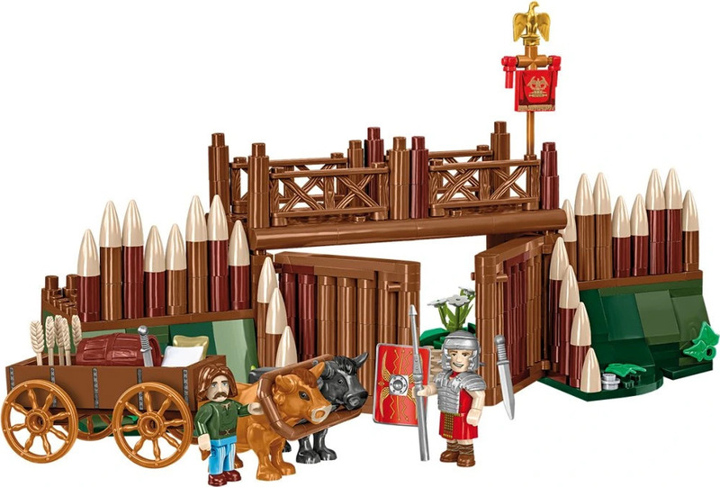 Il set "Campo Romano - Porta" ti porterà nel cuore del complesso militare romano. Il modello della porta del campo romano ha cancelli apribili, un'alta palizzata di legno e molti accessori per creare scene della vita del campo e delle campagne militari. La confezione include una figura di un legionario romano, una figura di un commerciante gallico e un modello di veicolo trainato da buoi. Usa questo set insieme ad altri set della collezione Imperium Romanum e costruisci un intero campo romano!