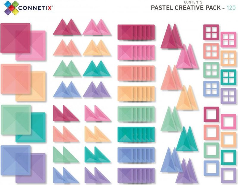 Progettato per supportare ore di creatività illimitata, divertimento e apprendimento – tutto attraverso il GIOCO! Il pacchetto creativo Pastel da 120 pezzi CONNETIX contiene diverse forme tra cui quadrati piccoli e grandi, triangoli equilateri, triangoli rettangoli, triangoli isosceli, pezzi a forma di finestra e porta in 8 straordinarie tonalità pastello della Terra. È il catalizzatore perfetto per il gioco in famiglia, la costruzione di CREAZIONI CONNETIX PIÙ GRANDI e l'espansione della gamma di colori che i vostri bambini scoprono!