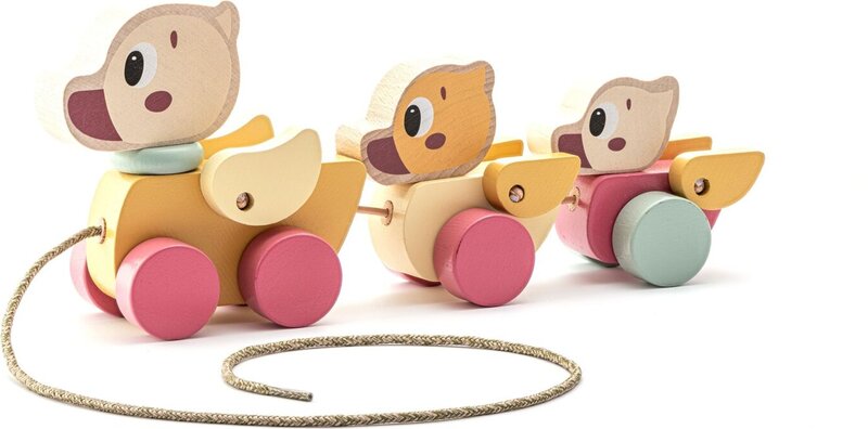 Le anatre di legno da tirare con la corda sono il compagno ideale per i viaggi dei bambini piccoli. La lunghezza della corda è di circa 60 cm. Grazie alla loro costruzione, sembrano vive.