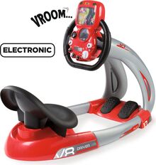 Simulatore di guida per giovani conducenti. Sedile regolabile, pedali meccanici, volante elettronico. Con effetti luminosi e sonori.
