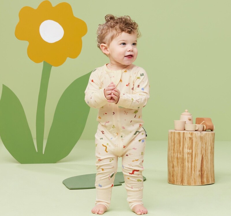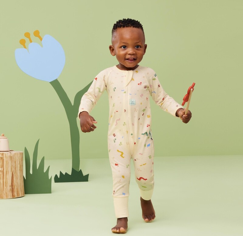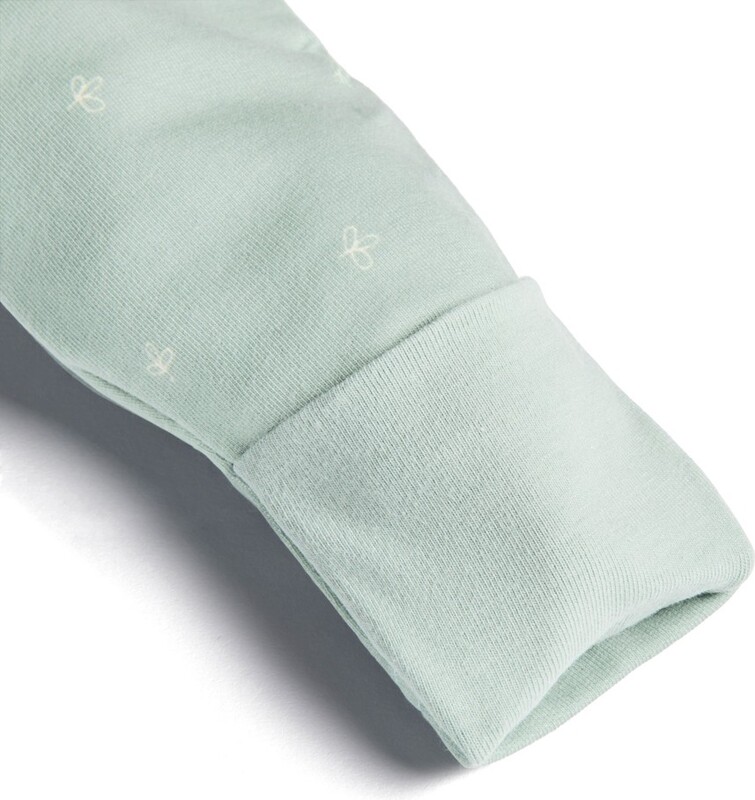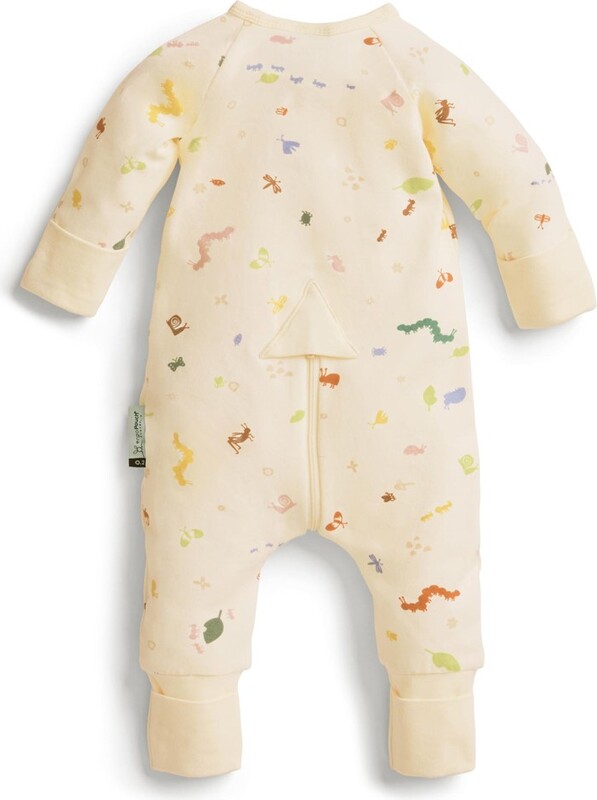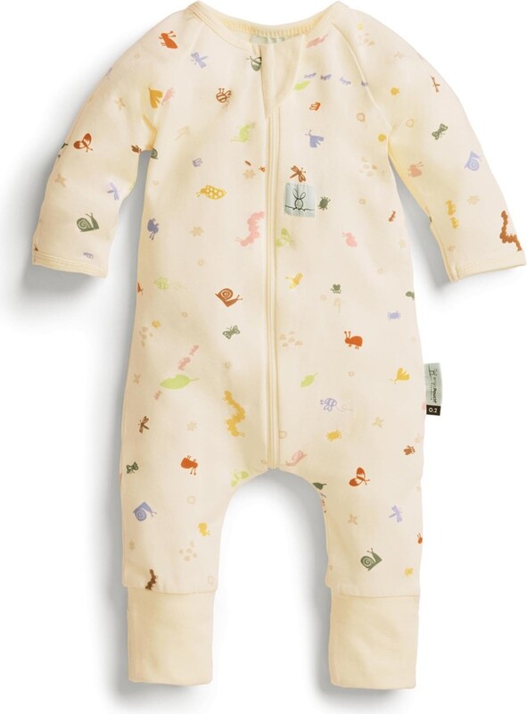 La tutina ha molte caratteristiche pratiche, come cerniere a tre vie per cambiare e vestire facilmente il pannolino, polsini pieghevoli sulle braccia (sostituiscono i guanti) e polsini sulle gambe (sostituiscono i calzini) e protezioni per cerniere. Le fibre organiche certificate GOTS sono delicate sulla pelle e sensibili all'eczema e alla pelle secca. Tutti i tessuti ergoPouch sono tinti con coloranti atossici a base d'acqua e sono disponibili con stampe e colori alla moda adatti a qualsiasi stanza. Tutte le stampe sono progettate direttamente nell'ergoPouch.