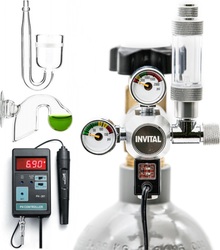 Il pacchetto include: Bottiglia, valvola riduttrice di CO2, valvola EMG, contatore di bolle, tubi ad alta pressione da 3 m e 1 confezione di ricarica INVITAL CO2 Generatore (ricarica per far funzionare il set).