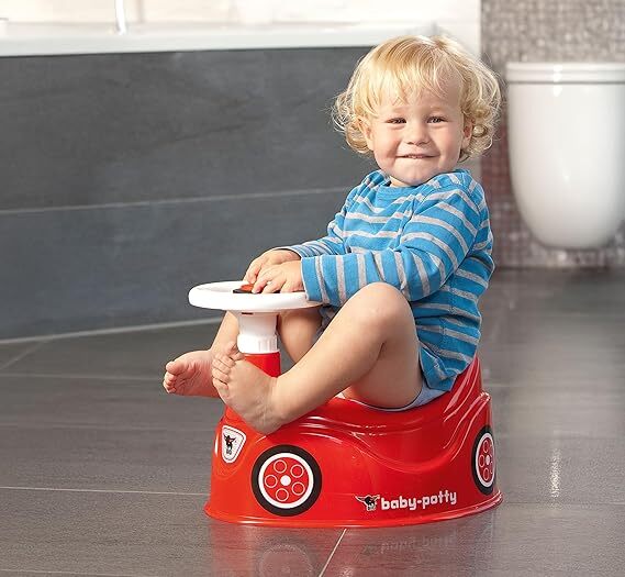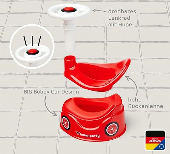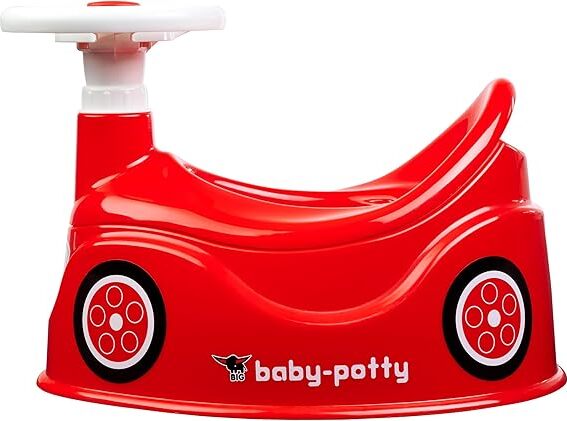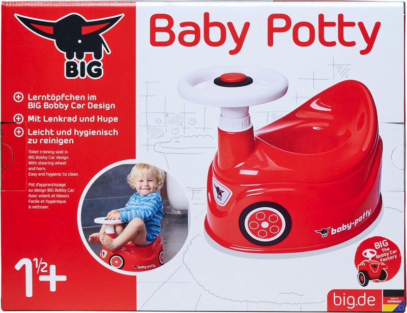 Il bellissimo riduttore rosso Big a forma di auto cattura l'attenzione del bambino, lo invita a sedersi e rendere così le necessità molto più piacevoli.