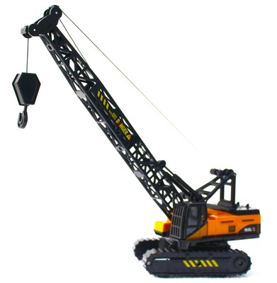 La gru è progettata per ruotare di 360 gradi, consentendo ai bambini di avere una visione completa dell'area di lavoro. Il braccio della gru può essere sollevato ed è dotato di un sistema di argano perfettamente funzionante con gancio per appendere che imita una vera gru. La gru da 36 cm è su un volano, che permette ai bambini di maneggiare questo giocattolo facilmente e con il minimo sforzo.
