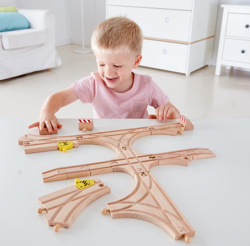 Costruisci la ferrovia dei tuoi sogni con questo fantastico set di binari HAPE. Il set include binari, incroci a T, scambi, incroci e molti altri pezzi.
