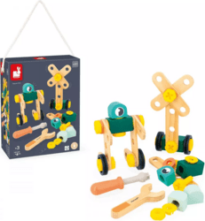 Il set di costruzione da 50 pezzi della collezione Brico'kids del marchio francese JANOD è il regalo ideale per un piccolo falegname.