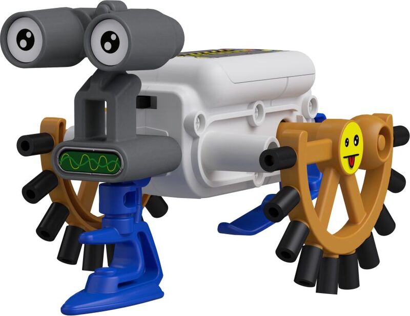 Il kit di costruzione del mini-robot che striscia in modo divertente è destinato ai bambini dai 8 ai 12 anni. I singoli pezzi del robot si incastrano rapidamente tra loro. Il motore è alimentato a batterie. Dove sta andando? È davvero costruito con sci, un ferro da stiro e un volante rotto? Semplice, divertente e folle allo stesso tempo!