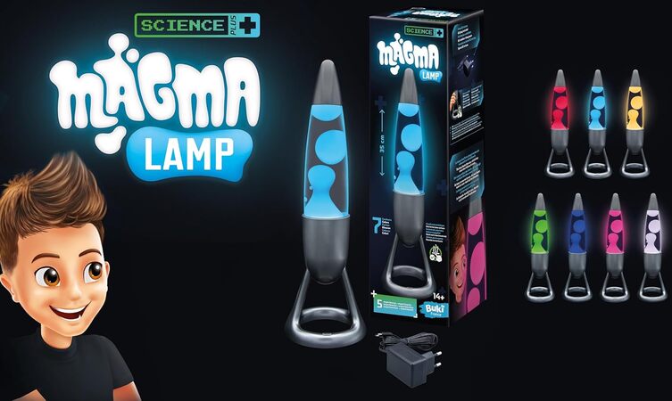 - Effetto "magma" reale — gocce colorate e bolle fluiscono in un contenitore trasparente e imitano il flusso della lava.