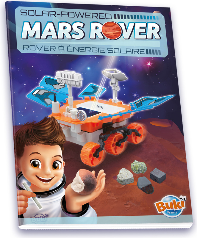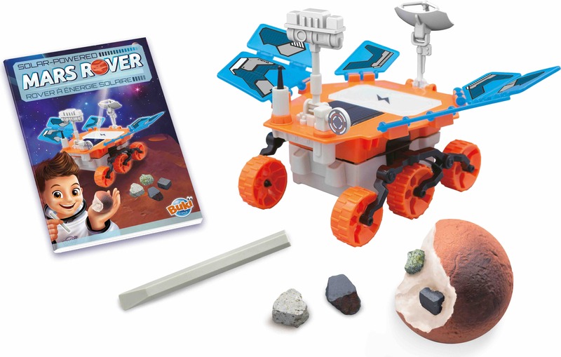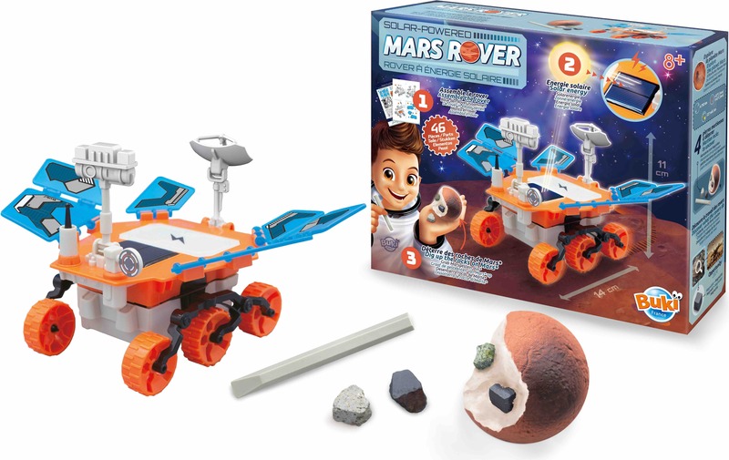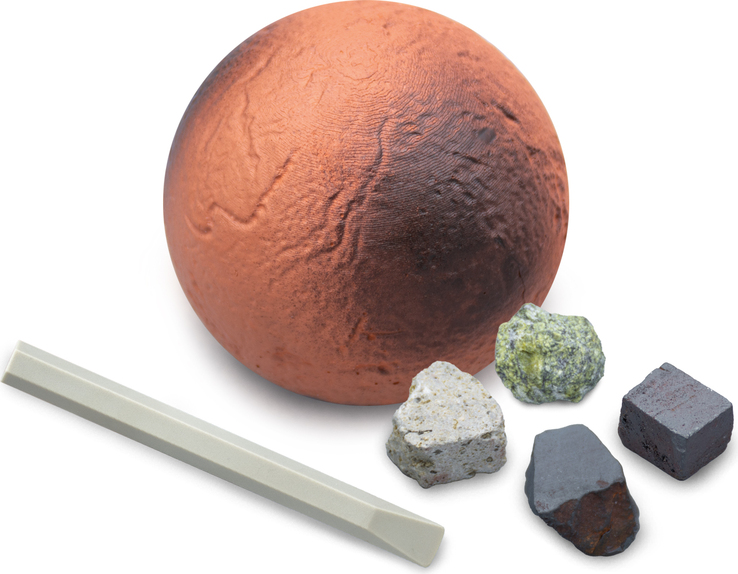 - Geologia autentica – include un blocco di gesso a forma di pianeta Marte, da cui i bambini possono estrarre 4 veri minerali: andesite, magnetite, ematite e olivina – simili a quelli scoperti dai robot su Marte.