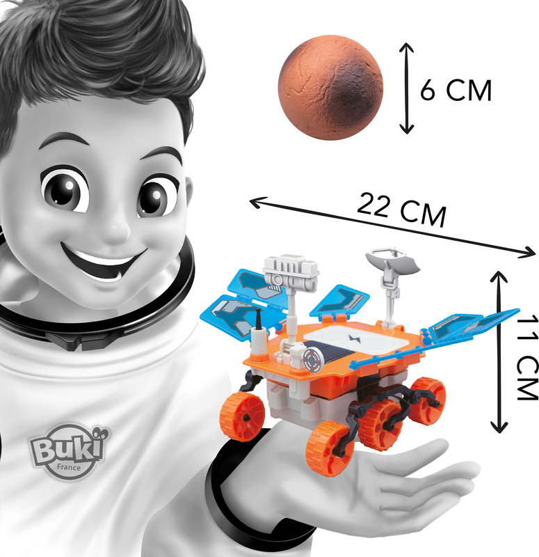 - Dimensioni del rover una volta assemblato: circa 22,5 × 14 cm