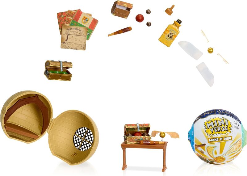 All'interno di ogni pallina ci sono mini accessori e forniture realistiche per creare le tue repliche preferite dalla serie di film di Harry Potter™! Dalla squadra di Quidditch™ al Nimbus 2000™ fino alla sciarpa di Grifondoro™. Ogni confezione è una SORPRESA, quindi non saprai quale Make It Mini hai finché non la apri! In questa serie ci sono 12 pezzi da collezionare.