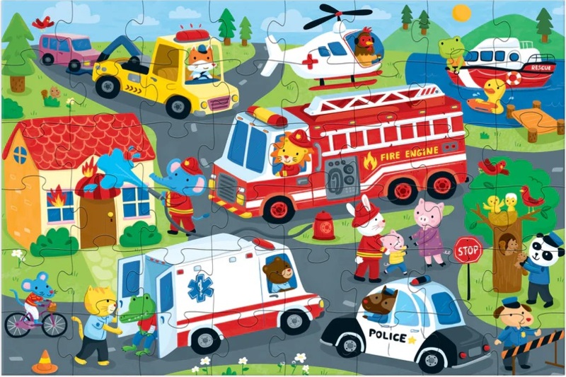 Mudpuppy Grande puzzle da pavimento Veicoli di soccorso 48 pezzi