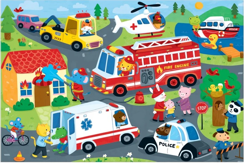 Mostra tutti i possibili tipi di veicoli di soccorso. I grandi pezzi sono ideali per le piccole mani dei bambini. I puzzle sono realizzati utilizzando una significativa percentuale di carta riciclata e offrono una stampa di alta qualità con colori atossici. Sono dotati di una finitura opaca che garantisce una riproduzione fedele dei dettagli e dei colori in ogni situazione. Il loro retro è rivestito con una superficie liscia e piacevole al tatto, che impedisce la formazione di polvere durante la conservazione del puzzle assemblato.