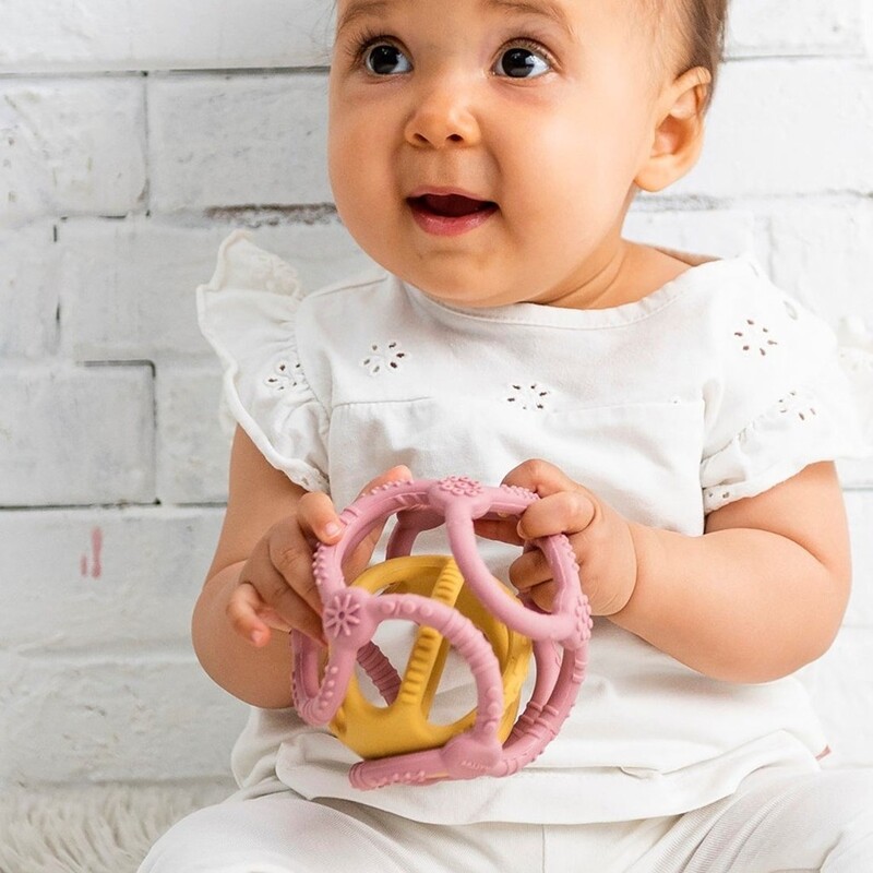 - Le palline di silicone hanno una superficie strutturata, che massaggia le gengive e allevia il dolore del taglio dei denti.