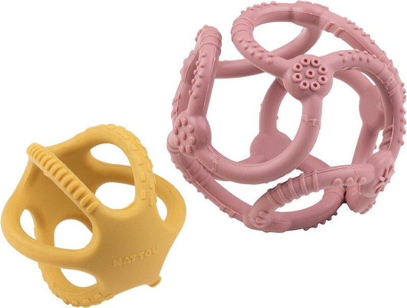 NATTOU Sfera in silicone Bite 2in1 senza BPA 10 cm giallo-rosa