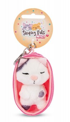 Portachiavi NICI Gatto addormentato 8cm maculato, cestino rosa