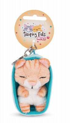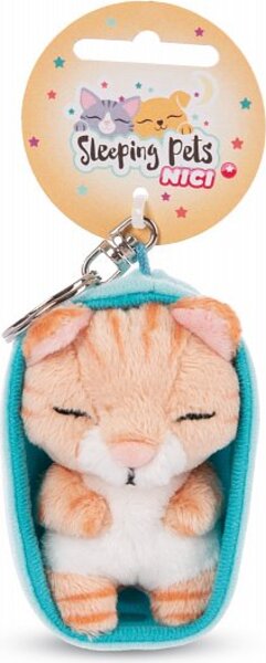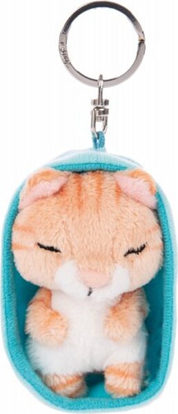 Portachiavi NICI Gatto addormentato 8cm marrone a righe, cestino azzurro