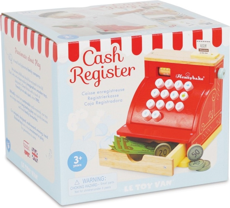 Nella confezione troverai una ricevuta in legno, un cassetto facilmente apribile per riporre i soldi, le fatture cartacee. Illustrazioni vintage con molti dettagli compreso il colore oro.