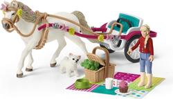 La carrozza per lo spettacolo ippico Schleich® Horse Club è decorata con cura con quadrifogli, ferri di cavallo e farfalle. Clara ha anche aggiunto bellissime decorazioni alla cavezza del suo pony Connemar.Sul pratico ripiano c'è una morbida coperta e un cestino da picnic ben fornito. Durante lo spettacolo equestre, Clara può sedersi comodamente su una coperta, coccolarsi con il suo cucciolo di chihuahua e godersi un picnic.