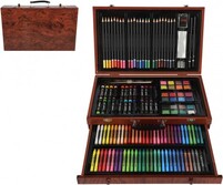 Ottima idea regalo per piccoli e grandi artisti!Questo ricco set creativo contiene tutto il necessario per dipingere, disegnare e creare – un totale di 143 pezzi ordinatamente sistemati in una elegante valigetta di legno con chiusura.