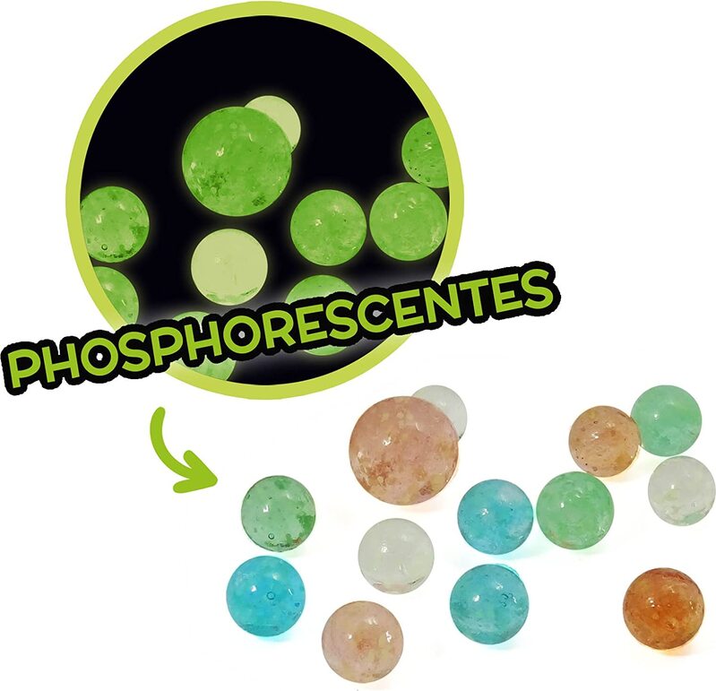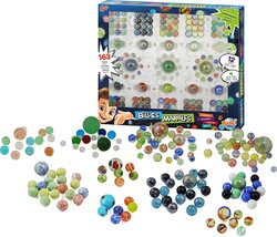 Set di 163 palline di vetro di diverse dimensioni e aspetto. L'aspetto delle palline di vetro è ciò che fa la differenza tra questo set e le altre palline comuni sul mercato. Nel set ci sono ad esempio iridescenti, perlacee, striate, a pois, marmorizzate, a colori pieni, metalliche e persino fosforescenti al buio.