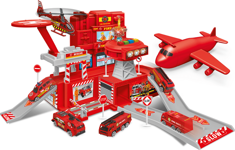 Questo garage dei pompieri è una scelta fantastica, poiché il set può essere ampliato non solo con nuovi veicoli, ma può anche essere il luogo di emozionanti avventure. Il garage per parcheggiare ha un design a più piani con strade di accesso. Il set include anche segnali stradali, effetti luminosi e sonori rendono il gioco per i bambini più emozionante.
