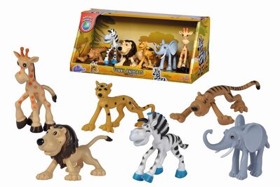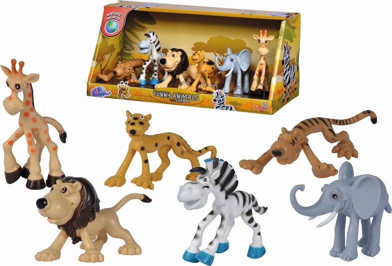 6 animali da safari 9 - 12 cm in un set: tigre, zebra, leone, ghepardo, elefante, giraffa.|