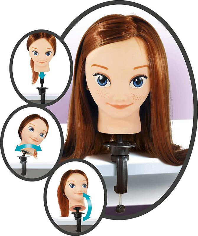 Il salone da parrucchiere per bambini è un giocattolo originale per tutti i futuri parrucchieri. La parte fondamentale dell'accessorio è una testa per lo styling (altezza 27 cm) con un modello di crescita dei capelli altamente realistico, che consente di pettinare e prendersi cura dei capelli come se fossero veri. I capelli sono la principale differenza e vantaggio rispetto alle teste pettinabili più economiche, che di solito hanno solo capelli in nylon e non possono essere lavorate realmente, poiché si incollano e si strappano.