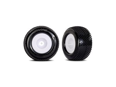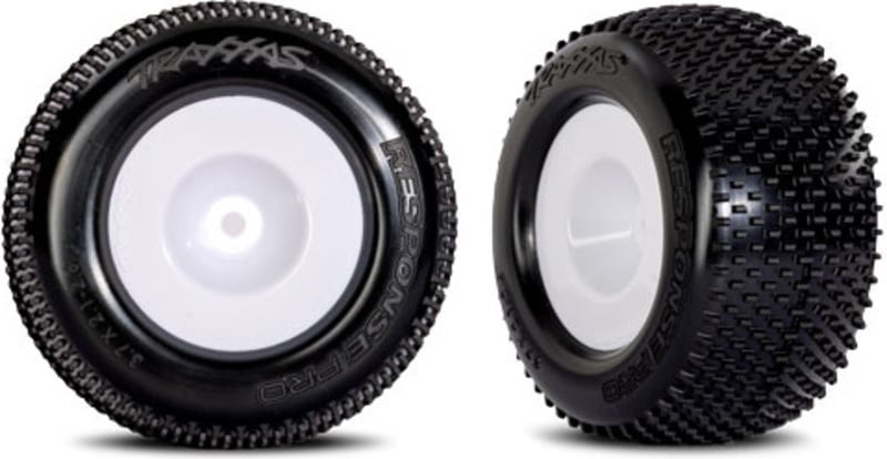 Ruote complete per auto RC Traxxas Mini XRT. Cerchio bianco con pneumatici Response Pro (mescola morbida S1) con inserto in schiuma. Diametro del cerchio 2.1" (esterno) / 2.6" (interno).